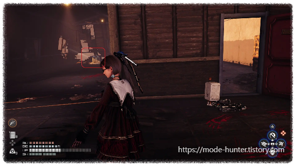 다음 건물로 넘어가서 똑같이 내부에서 오른쪽으로 돌면 상자가 있고, 왼쪽으로 돌면 시체가 있습니다.